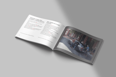 J'ai modernisé une brochure de 20 pages pour MINI, en utilisant une palette de couleurs composée de rouge, blanc et gris. Le rouge représente l'énergie et la passion, le blanc s'identifie à la simplicité et la pureté, et le gris l'élégance.